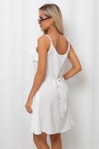На спинке по линии талии завязывается тонкий поясок.Низ ровный,без разрезов.