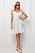 V- образная горловина.Перед оформлен воздушными воланами.