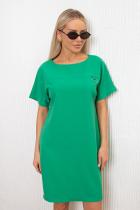 Комфортное платье прямого силуэта из однотонного полотна. Округлая горловина на внутренней обтачке. Короткий цельнокроенный рукав. Низ ровный, без разрезов.