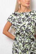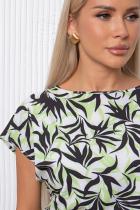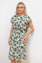 Комфортное платье полуприлегающего силуэта из легкой ткани «Ниагара». Короткие спущенные рукава. Горловина-лодочкой. Модель отрезная по линии талии, собрана на резинку. Низ ровный, без разрезов. Пояс из основной ткани в комплекте.