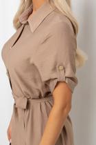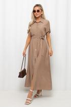 Элегантное платье А-силуэта. Горловина оформлена отложным воротником на стойке, по переду планка с застежкой на петли и пуговицы. Втачной короткий рукав присобран на пату. Низ ровный, без разрезов. Пояс из основной ткани в комплекте.