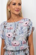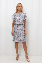 Комфортное платье полуприлегающего силуэта из легкой ткани с оригинальным принтом. Короткие спущенные рукава. Горловина на обтачке оформлена "