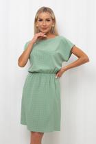 Комфортное платье полуприлегающего силуэта из легкой ткани с оригинальным принтом. Короткие спущенные рукава. Горловина на обтачке оформлена "