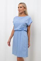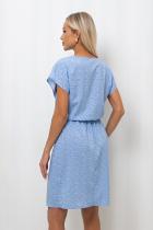 Комфортное платье полуприлегающего силуэта из легкой ткани с оригинальным принтом. Короткие спущенные рукава. Горловина на обтачке оформлена "