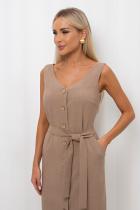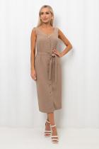 Лаконичное платье полуприлегающего силуэта. V – образная горловина по переду и спинке. По переду планка с застежкой на петли и пуговицы. По бокам функциональные карманы с отрезным бочком. Низ ровный, без разрезов. Пояс из основной ткани в комплекте.