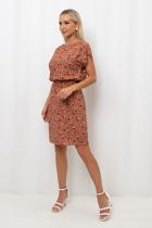 Комфортное платье полуприлегающего силуэта из легкой ткани с оригинальным принтом. Короткие спущенные рукава. Горловина на обтачке оформлена "