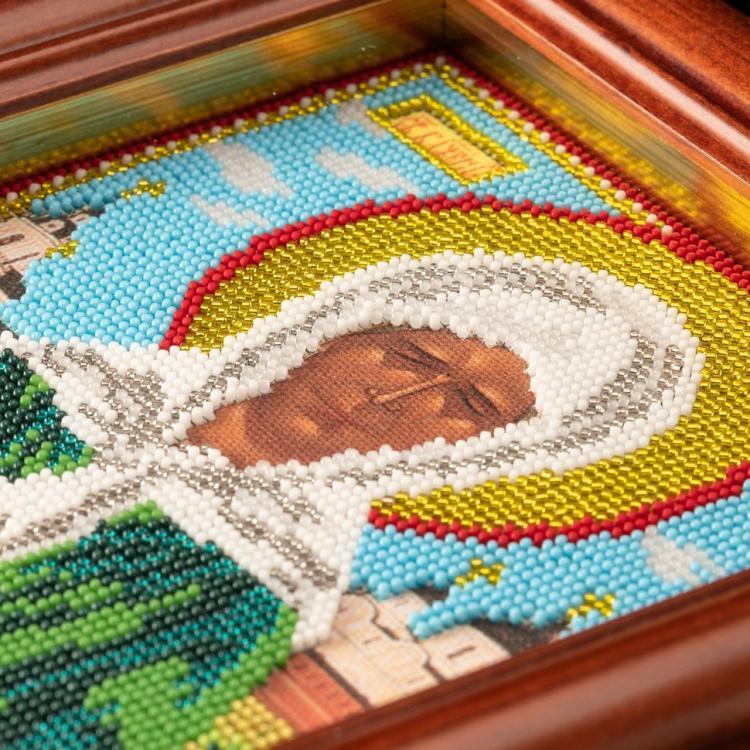 Матрону знают десятки тысяч православных людей. Матронушка — так ласково называют ее многие. Она — так же, как при земной своей жизни, помогает людям. Это чувствуют все те, кто с верою и любовью просят ее о заступничестве и ходатайстве перед Господом.В состав набора входит: канва (основа для вышивания) с фотореалистичным рисунком, цветная схема и подробные, специально разработанные, инструкции, ювелирный бисер, игла для бисера.