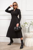 Женственное платье приталенного силуэта изготовлено из трикотажного полотна.V-образная горловина с цельнокроеной стойкой. Длинный втачной рукав. Модель отрезная по линии талии на запахе, сбоку пояс-завязка. Низ ровный, без разрезов.