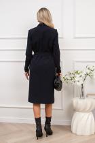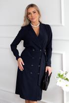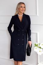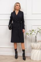 Элегантное платье прямого силуэта из костюмной ткани. Горловина с английским воротником. По переду выполнена двубортная застежка на петли и пуговицы. Длинный втачной рукав. Модель дополнена функциональными карманами в боковых швах. Низ ровный, без разрезов. Пояс из основной ткани в комплекте. Отличный вариант для офиса.