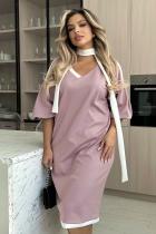 Женственное платье прямого силуэта. V - образная горловина на внутренней обтачке оформлена вставкой. Втачной рукав - фонарик со спущенным плечом. Низ ровный, оформлен притачной манжетой, сзади шлица. Пояс из основного материала входит в комплект.