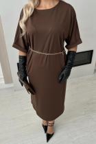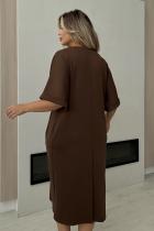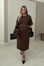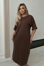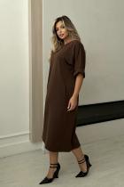 Комфортное платье свободного кроя из трикотажного полотна. Округлая горловина на внутренней обтачке. Цельнокроеный рукав оканчивается притачной манжетой с отворотом. По переду расположены функциональные карманы. Низ ровный, сзади шлица.