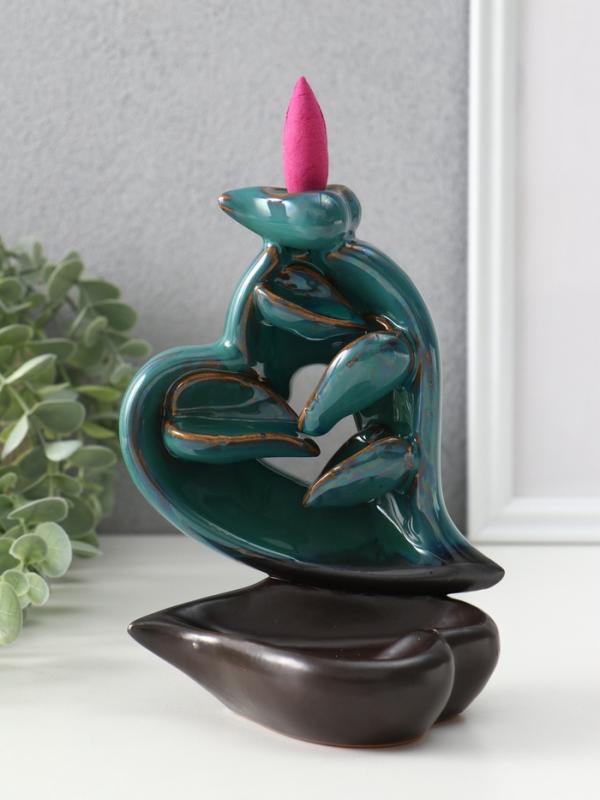 Подставка для благовоний TAKE IT EASY «Сердце», набор благовоний конусы, стелющийся дым, зелёное, 13×9×16 см