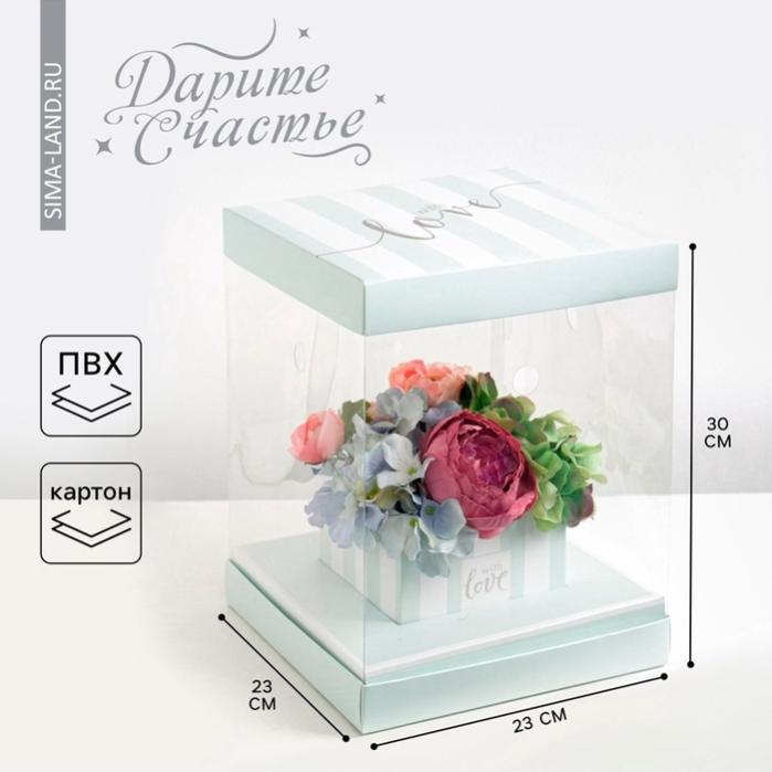 Коробка подарочная для цветов с вазой и пластиковыми окнами складная, упаковка, With love, 23×30×23 см