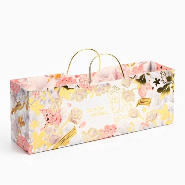 Пакет подарочный под бутылку с тиснением, Принцессы, 35.5×12.5×9 см