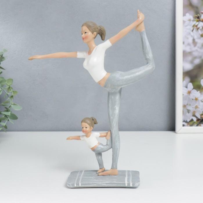 Фигурка полистоун «Мама с дочкой в позе танцора», бело-серый, 25.5×6.5×19.5 см