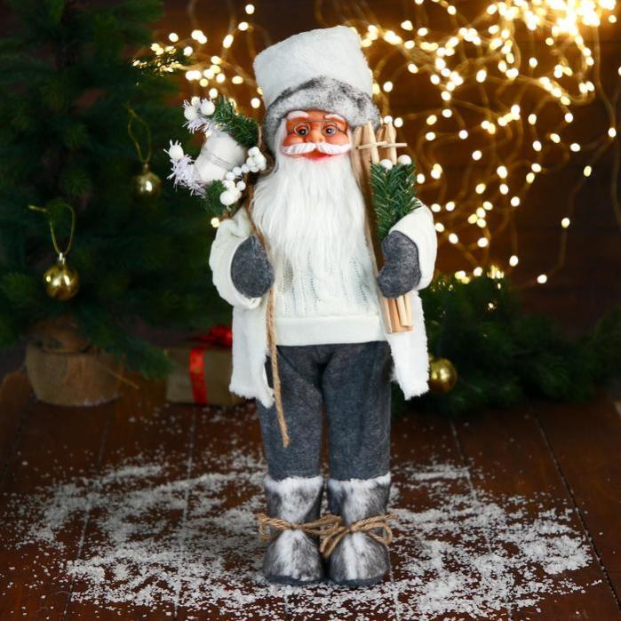 Дед Мороз под ёлку «Зимнее волшебство. В белом свитере, с лыжами», 45 см