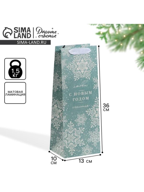 Пакет новогодний подарочный под бутылку «С Новым годом», 13×35×10 см