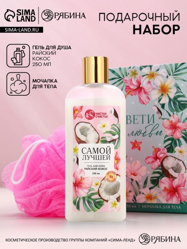 Подарочный набор «Цвети от любви», гель для душа 250 мл и мочалка для тела, Чистое счастье