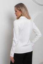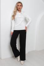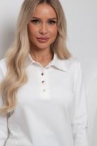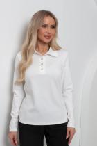 Комфортный джемпер полуприлегающего силуэта из трикотажного полотна. Длинный втачной рукав. Отложной воротник. Перед оформлен планкой с застежкой на петли и пуговицы. Низ ровный, без разрезов.