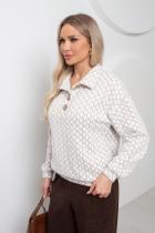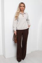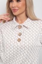 Комфортный джемпер свободного кроя из трикотажного полотна. Длинный втачной рукав со спущенным плечом присобран на манжету. Отложной воротник. Перед оформлен планкой с застежкой на петли и пуговицы. Низ на манжете.