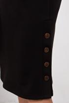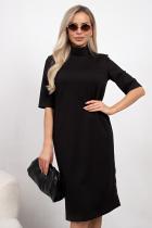 Стильное платье прямого кроя из трикотажного полотна. Горловина оформлена воротником - стойка с застежкой на потайную молнию. Втачной короткий рукав. Низ ровный, левый бок оформлен декоративной планкой.