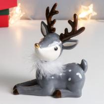 Фигурка керамика «Оленёнок с пуховым ожерельем», серый, 17.2×8.3×14.8 см