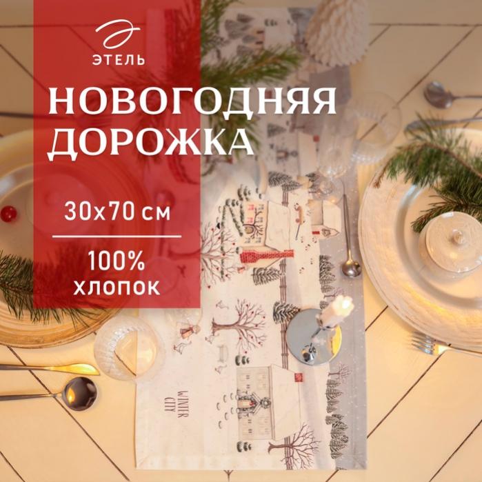 Дорожка на стол Этель «Зимняя деревушка» 30×70 см, 100% хлопок, саржа 190 г/м², белая/серая