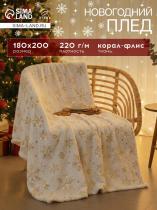 Плед «Этель. Золотые снежинки», 180×200 см, корал-флис, белый