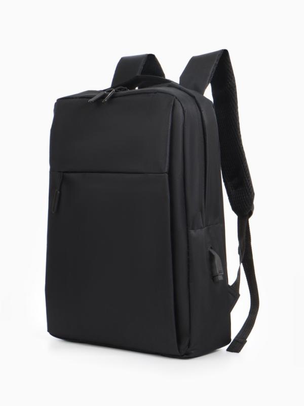 Рюкзак мужской на молнии, 2 наружных кармана, с USB, цвет чёрный