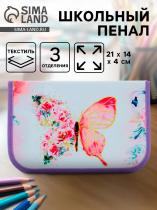 Пенал школьный, 3 секции, 14×21×4 см «Бабочки»