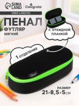 Пенал - футляр Calligrata Black, 85×210×50 мм, с откидной планкой, мягкий, текстильный, чёрный/ярко-салатовый