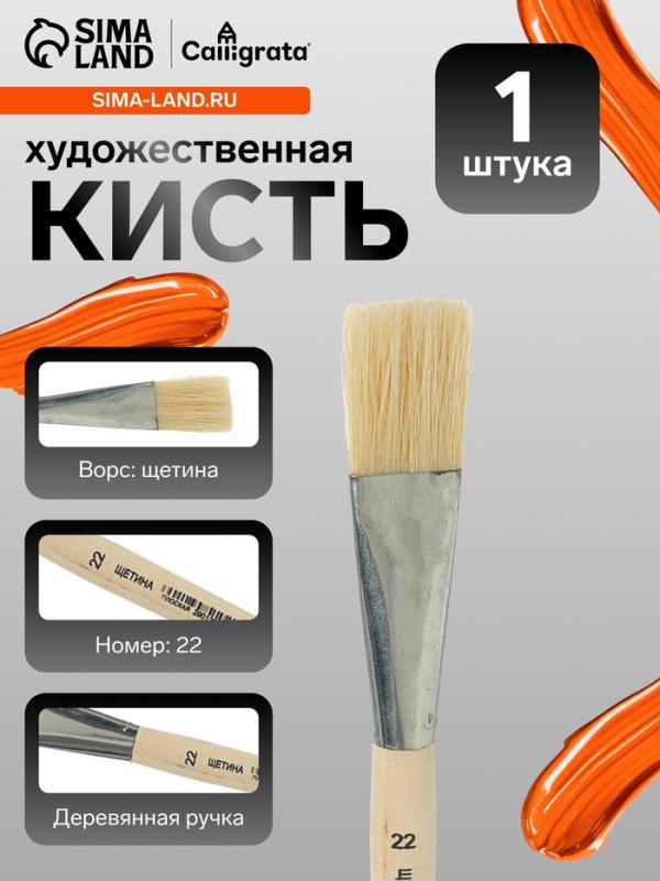 Кисть для рисования, щетина, № 22, Calligrata, плоская, деревянная ручка
