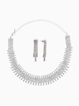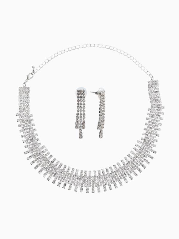 Набор 2 предмета: серьги, колье со стразами «Лёд. Клавиши», d=13.5 см, белый в серебре