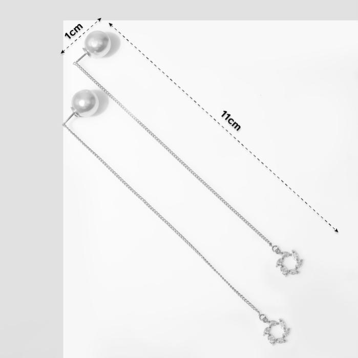 Серьги с жемчугом «Бусина» круги витые, цвет белый в серебре