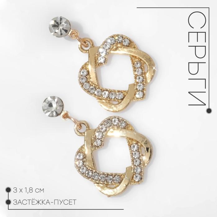 Серьги со стразами «Сердце» переплетение, белые в золоте