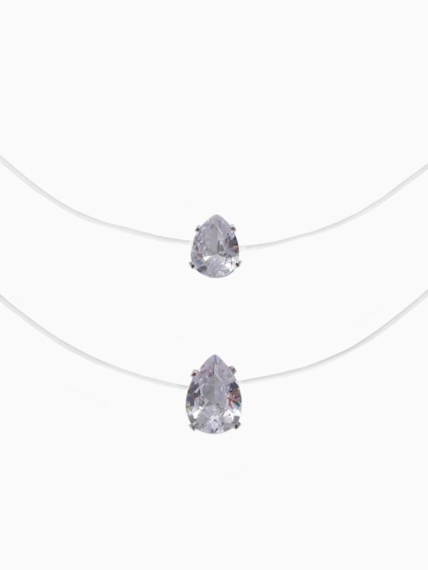 Кулон на леске «Двойная слеза», белый в серебре, 40 см
