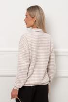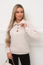 Комфортный джемпер свободного кроя из трикотажного полотна. Длинный втачной рукав со спущенным плечом присобран на манжету. Отложной воротник. Перед оформлен планкой с застежкой на петли и пуговицы. Низ на манжете.