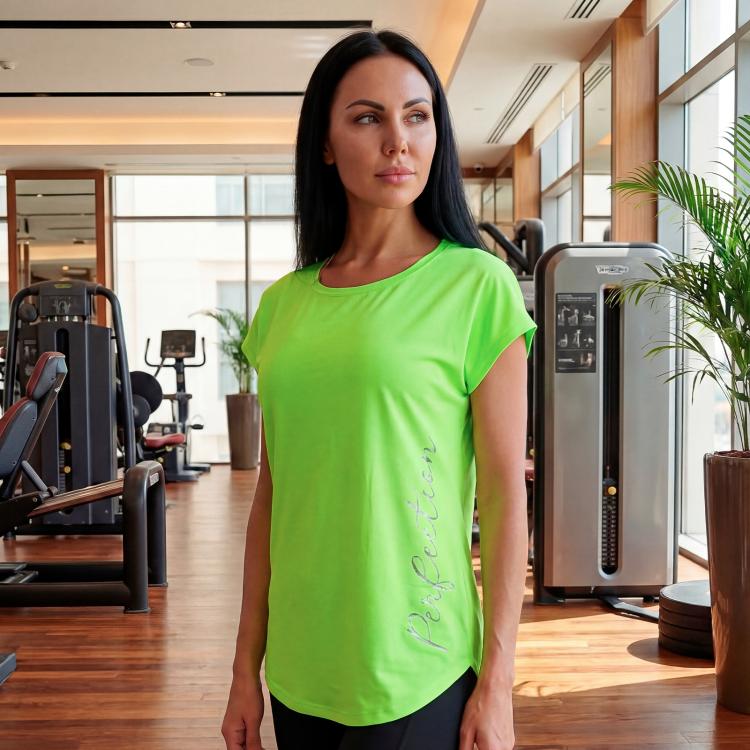Свободный удлиненный топ с фигурным низом ( принт «Perfection»).Параметры модели: 87-59-85. Размер 42. Рост 164.Материал:
