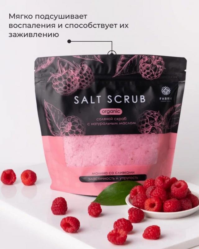 Соляной скраб обеспечивает эффективный уход за кожей тела. Частички скраба глубоко очищают, удаляя ороговевшие клетки, а натуральные масла разглаживают и смягчают кожу. Скраб с экстрактом семян малины способствует поддержанию увлажненности, эластичности, упругости кожи и окутывает неземным ароматом спелых, сладких ягод!