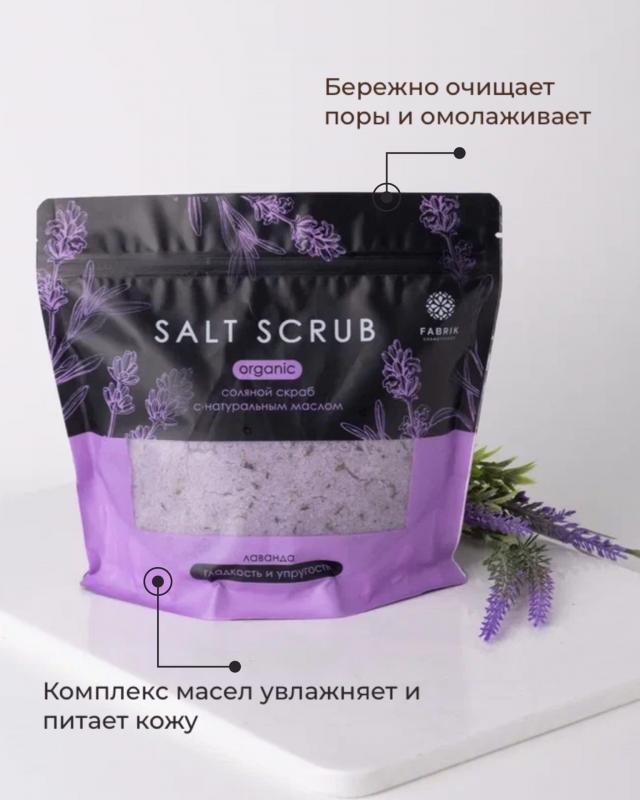 Соляной скраб обеспечивает эффективный уход за кожей тела. Частички скраба глубоко очищают, удаляя ороговевшие клетки. Уникальный комплекс натуральных масел (масел ши, оливкового и кокосового) эффективно насыщает питательными веществами, разглаживает и смягчает кожу. Эфирное масло лаванды поможет расслабиться в конце насыщенного дня.