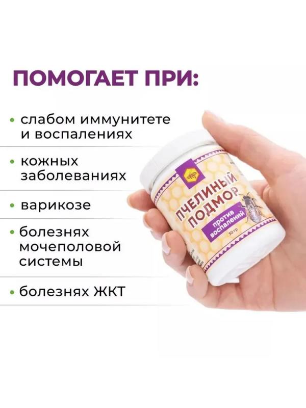 Важная ценность подмора – это восстанавливающий хитозановый комплекс. Его состав – это гепарин, пчелиный яд, меланин, глюкозамин и уксусная кислота. Все эти вещества умеют восстанавливать биологическое равновесие всего организма за счет очищений, регуляций процессов обмена, стимуляции иммунной системы. Хитозан отвечает за работу щитовидки, помогает быстро заживлять слизистые оболочки и кожу, не оставляет никаких рубцов при язвах, ожогах, ранах. Если нанести подмор на пораженный участок, то непременно наступит обезболивающий и кровоостанавливающий эффект. Меланин в подморе работает против токсичных веществ в организме. Благодаря ему в кровь попадает меньше токсинов, что оберегает нас от многих болезней. Гепарин работает против воспалений, занимается стабилизацией артериального давления, улучшением кроветворения, улучшением состояния головных сосудов и сосудов конечностей при варикозе. Подмор также способствует снижению уровня вредного холестерина в крови