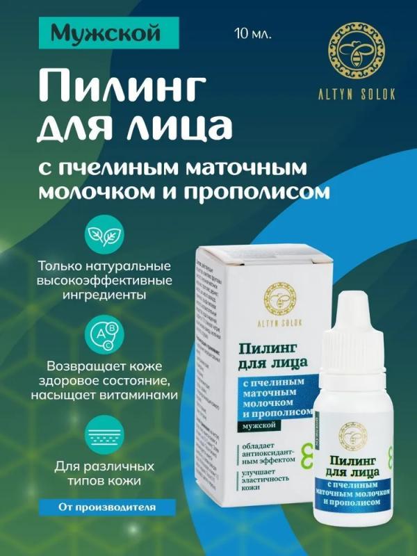 Пилинги для лица с прополисом, янтарной кислотой, пчелиным ядом, мумие, маточным молочком (в ассортименте шесть разных видов - описания в карточках) от производителя Алтын Солок на основе натуральных высокоэффективных компонентов который обеспечивает комплексный уход за всеми типами кожи без дополнительных косметических средств. Мумие – это богатое своим химическим составом органико-минеральное смолоподобное природное вещество. Мумие стимулирует выведение токсинов, приводит к обновлению и восстановлению верхних слоев кожи, устраняет пигментные пятна, выравнивает рельеф кожи и разглаживает морщины. Янтарная кислота - мощный антиоксидант, ингибирует действие свободных радикалов на клеточном уровне, стимулирует дыхание кожи, укрепляет иммунную защиту кожи и замедляет старение. Активно участвует в отслаивании ороговевших кератиноцитов и образовании новых клеток. Пчелиный яд проявляет широкий спектр биологической активности. Активно используется в косметологии при лечении акне и прочих дерматологических заболеван
