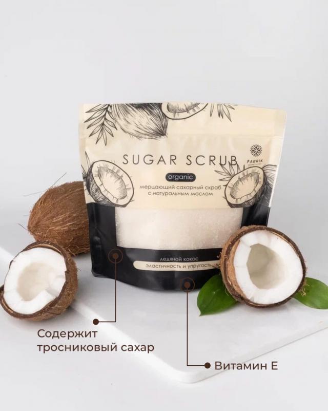 придает коже легкое сияние. Кокосовая стружка нежно массирует кожу. Частички сахарного скраба бережно отшелушивают, делая кожу мягкой и упругой. Уникальный комплекс натуральных масел кокоса, ши, сладкого миндаля эффективно насыщает питательными веществами, разглаживает и смягчает.