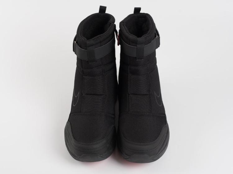 Сапоги Nike - отличный вариант для суровых зимних морозов. Модель высокая, поэтому она способна отлично сохранять тепло. Внутри модели имеется мягкие вставки, которые обеспечивают дополнительный комфорт во время ходьбы. Верх модели выполнен из плотного текстиля. Этот материал обладает влагоотталкивающими свойствами. Подошва достаточно массивная, за счет этого обеспечивается отличная амортизация. Резиновая подметка имеет уникальное строение протектора. При низких температурах все материалы своих физических свойств не изменяют. По периметру имеется логотипы бренда. Зимняя модель Резиновая подошва Влагоотталкивающий верх