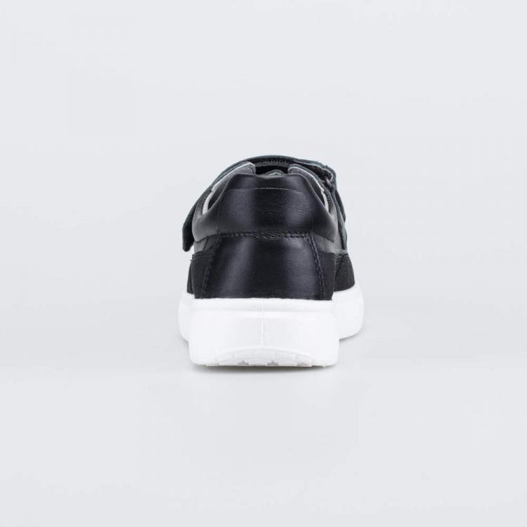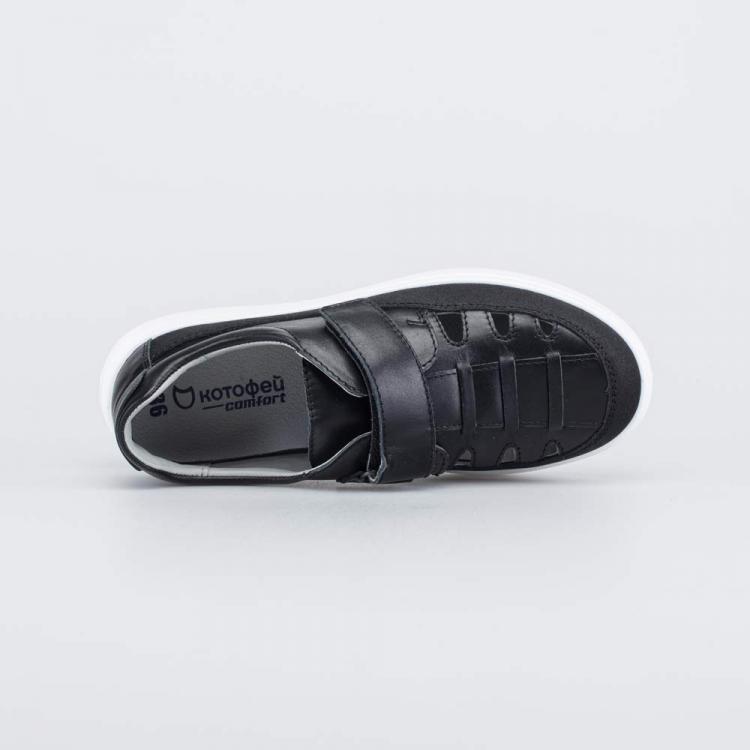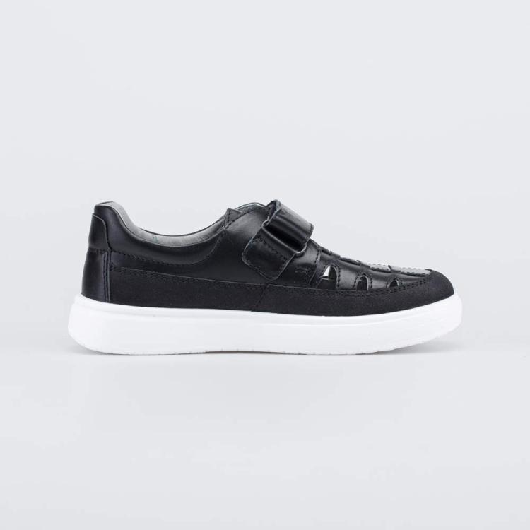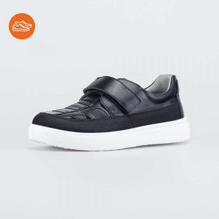 Школьные полуботинки для мальчика имеют полуоткрытую конструкцию, которая обеспечивает стопам максимально комфортный микроклимат в течение долгого учебного дня. Верх изготовлен из гипоаллергенной и дышащей натуральной кожи классического черного цвета. По всему периметру вдоль подошвы на нее нанесено ПУ-напыление, защищающее от повреждений. Подкладка и стелька выполнены из белой натуральной кожи – не придется переживать, что школьная обувь окрасит носочки. Полуботинки на липучках надежно фиксируются на ногах, в них удобно обуваться и разуваться. Белая подошва из ПУ (полиуретана) хорошо амортизирует, сохраняет обувь легкой и не оставляет следов на полу. Модель анатомически правильная: незаметная приподнятость пяточной части, задник необходимой жесткости и круглый носок обеспечивают правильную поддержку стоп и положительно влияют на развитие опорно-двигательного аппарата. Сделано в России.