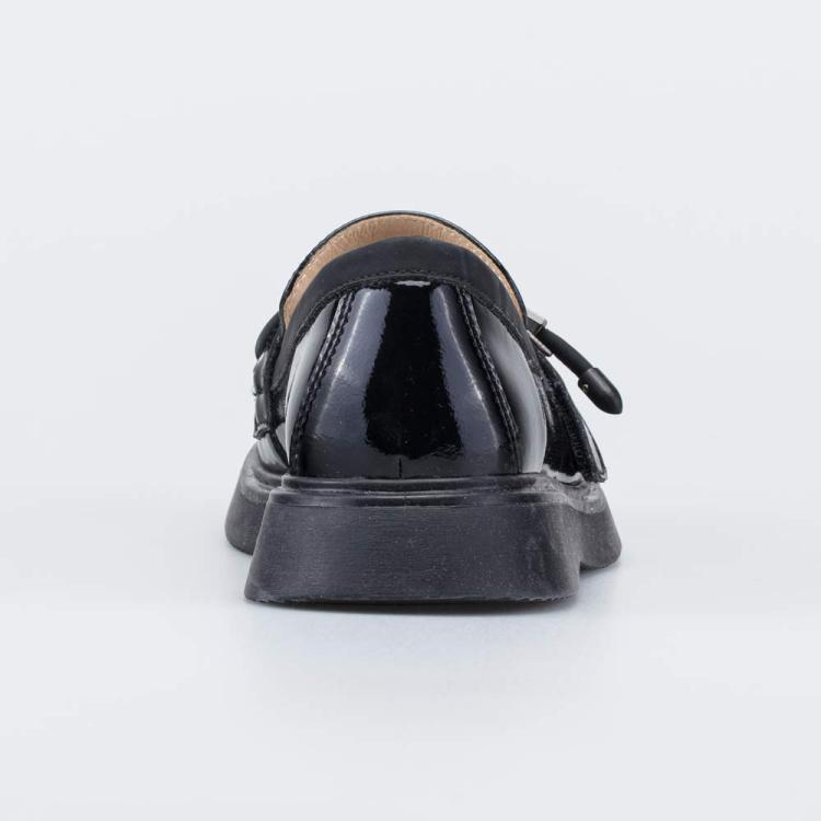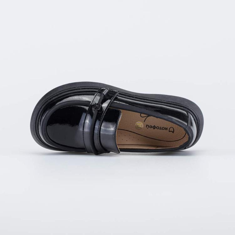 Кожаные лоферы подходят для создания модных повседневных или праздничных образов, а также отлично сочетаются со школьной формой. Верх изготовлен из гипоаллергенной и дышащей натуральной кожи с лаковым покрытием, которое делает черные туфли заметной деталью любого образа. Подкладка и стелька – из белой натуральной кожи. Не придется переживать, что школьная обувь окрасит носочки или колготки. Конструкция лоферов не предусматривает каких либо креплений – комфортная посадка на ногах обеспечивается правильно подобранной колодкой. Подошва изготовлена из ТЭП (термоэластопласта), который обладает необходимой гибкостью и амортизацией. Модель анатомически правильная: имеет приподнятость пяточной части, задник необходимой жесткости, круглый носок и мягкий подсводник. Это обеспечивает правильное развитие стоп и всего опорно-двигательного аппарата.
