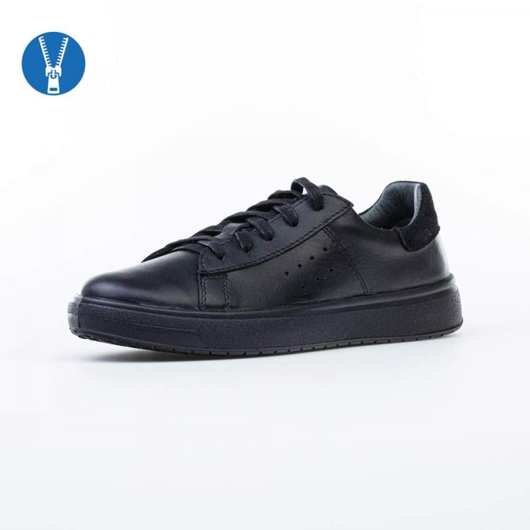 Кожаные кеды для мальчика черного цвета Верх, подкладка и стелька выполнены из натуральной кожи - износостойкого, гипоаллергенного и дышащего материала. Мягкий манжет снижает вероятность натирания. Перфорация обеспечивает дополнительную вентиляцию. Шнуровка позволяет отрегулировать обувь по подъему, а молния - быстро обуваться и разуваться. Подошва из ПУ (полиуретана) - гибкая и амортизирующая. Благодаря лаконичному дизайну, модель отлично подходит для повседневной носки в школу. Модель анатомически правильная: имеет небольшую приподнятость пяточной части по отношению к носочной, которая незаметна внешне, подсводник (супинатор), в меру жёсткий задник и круглый носок. Такая научно-обоснованная конструкция положительно влияет на правильное развитие стоп и всего опорно-двигательного аппарата. Сделано в России.