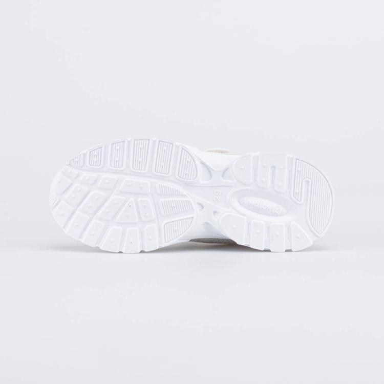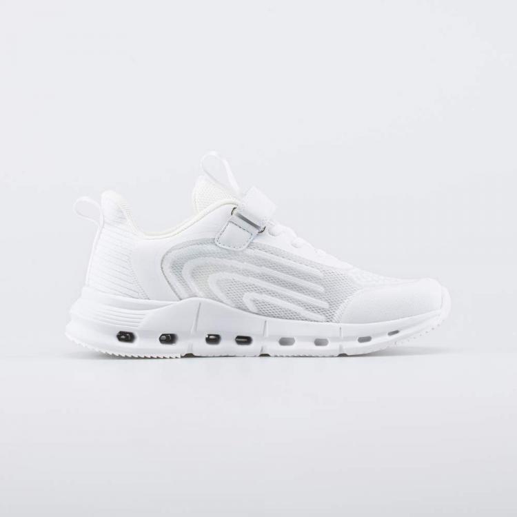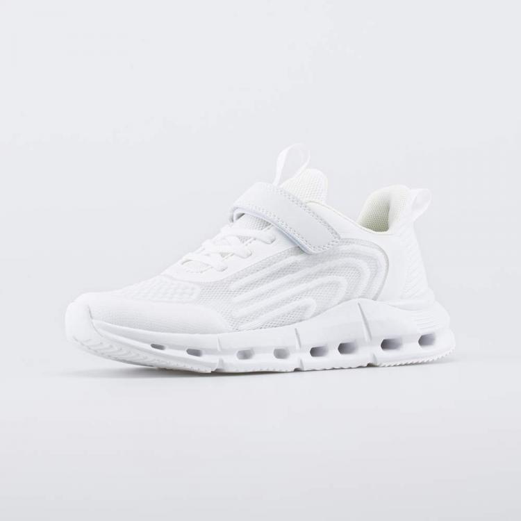 Белые кроссовки для девочки – вариант модной обуви, которая подходит для создания множества современных образов. Эти подростковые кроссовки имеют отличительную особенность: подошва из ЭВА уникальной конструкции гарантирует максимальную амортизацию – отверстия сжимаются при каждом шаге, обеспечивая мягкое приземление и распределение ударной нагрузки по всей площади. Накладка из ТЭП на ходовой поверхности повышает уровень сцепления с асфальтом и грунтом. Верх изготовлен из вязаного текстиля, который обеспечивает высокую воздухопроницаемость. Детали из искусственной кожи формируют каркас модели. Носочная часть защищена ПУ-накладкой. Подкладка из гипоаллергенного полиэстера в подростковой обуви отвечает за потоотведение. Формованная основа съемной текстильной стельки поддерживает стопу в правильном положении. Удобные кроссовки на липучках дополнены шнурками-резинками, которые не надо завязывать. Обрабатывайте белую обувь защитными спреями и чистите щеткой. Машинная стирка исключена.