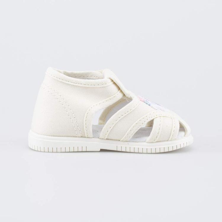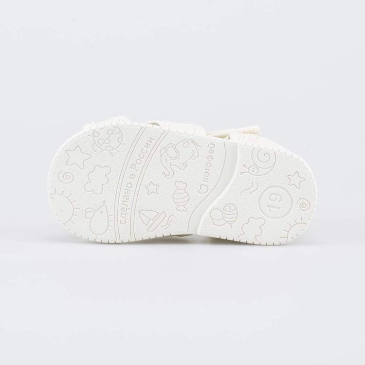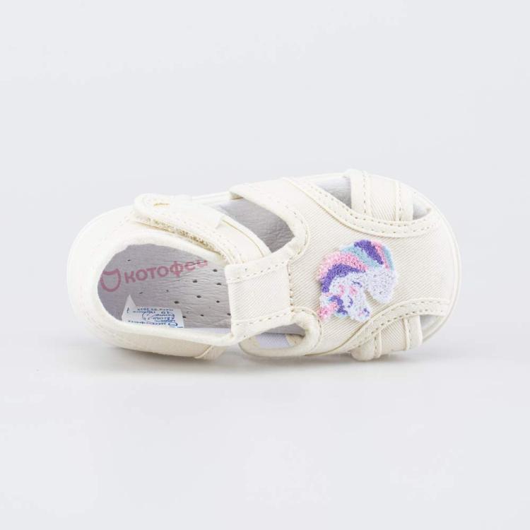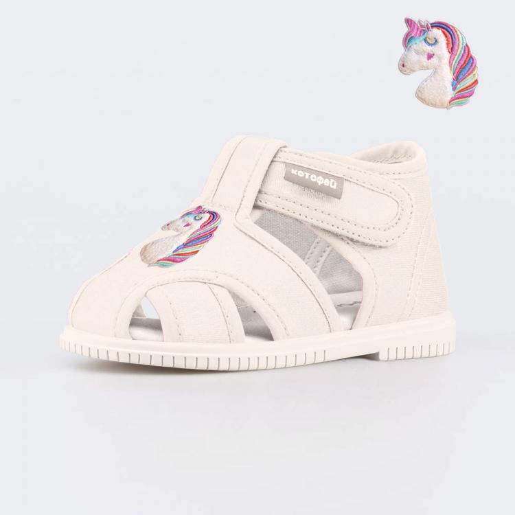 Детские сандалии для девочки украшены милой аппликацией в виде единорога. Верх и подкладка бежевых сандалий изготовлены из хлопка, стелька – из натуральной кожи. Эти гипоаллергенные и дышащие материалы создают максимально комфортный микроклимат для детских ножек. Сандалии на липучках, которые позволяют отрегулировать детскую обувь по подъему, а также быстро обуваться и разуваться. Подошва из облегченной резины хорошо амортизирует. Не оставляет следов на полу, поэтому сандалии удобно использовать в качестве сменной обуви в детский сад. Модель разработана для детей ясельного возраста, поэтому большое внимание уделено анатомической конструкции: - каблучок Томаса отвечает за правильное распределение нагрузки