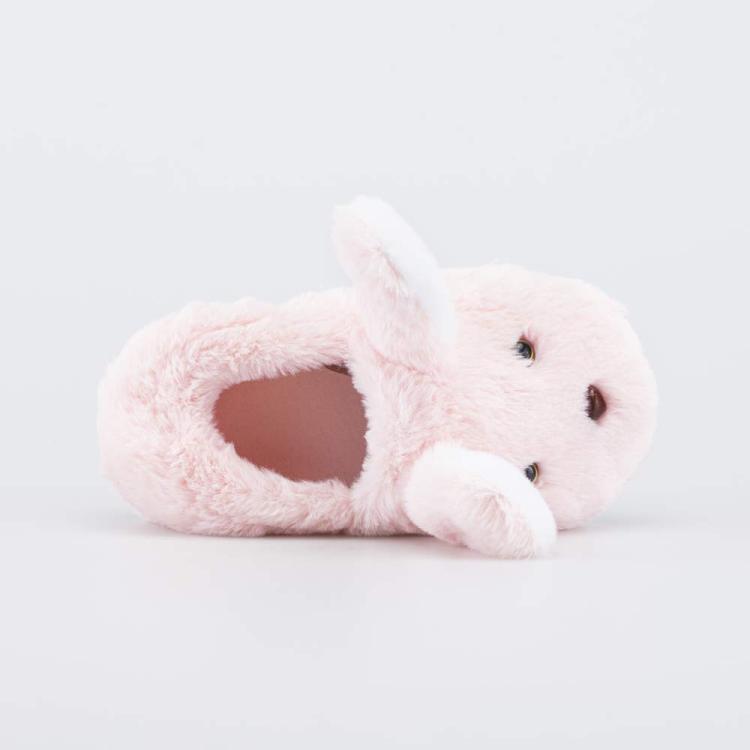 Пушистые 3D-тапочки для девочки в виде зайки подходят даже для холодных помещений. Верх из нежного искусственного меха выполнен из полиэстера – гипоаллергенного и легкого в уходе материала. Подкладка и стелька изготовлены из натурального хлопка. Внутреннее пространство не имеет грубых швов. Модель полностью закрыта для сохранения тепла, а эластичная резинка на пятке обеспечивает безопасную фиксацию даже во время активных детских игр. Подошва из термопластичной резины не скользит на традиционных напольных покрытиях. Тапочки можно стирать вручную. Модель предназначена для детей дошкольного возраста, поэтому подошва имеет анатомический рельеф и обеспечивает поддержку стопы.